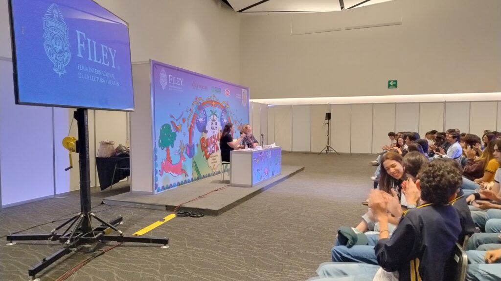 Parte de las actividades matutinas de la Feria Internacional de la Lectura Yucatán (FILEY) 2026, se realizó el encuentro “Jóvenes con Ana Elsa Pérez”, quien es Licenciada en Historia, egresada en la Maestría en Historia de México por la UNAM, promotora cultural, y mediadora de lectura e investigadora en el ámbito de la literatura infantil y juvenil en México. Actualmente es directora del Centro de Enseñanza para Extranjeros de la UNAM (CEPE).