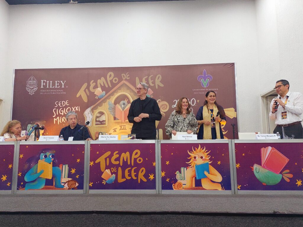 Como parte de la tercera sesión de trabajo del XVI Congreso Internacional de UC- Mexicanistas, fue presentada la antología digital de la obra de Alberto Ruy Sánchez, quien generosamente la obsequió para ser distribuida gratuitamente por la Feria Internacional de la Lectura Yucatán (FILEY), tras recibir el Premio Excelencia en las Letras “José Emilio Pacheco” 2025.