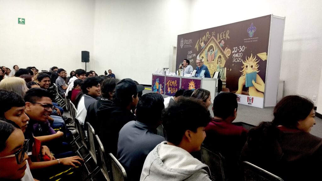 En un diálogo cercano y generoso, el autor Alberto Ruy Sánchez compartió con un grupo de estudiantes sus experiencias y aprendizajes, en un encuentro especial con jóvenes en la Feria Internacional de la Lectura Yucatán 2025.