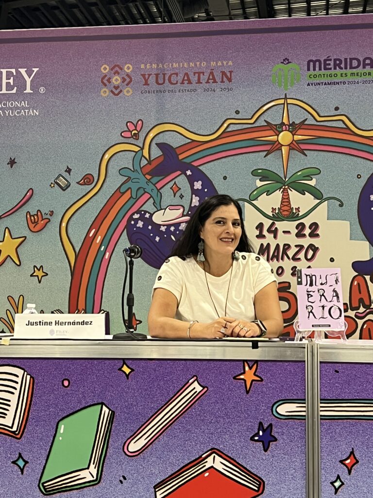 La escritora Justine Hernández presentó su libro de relatos “Mujerario” en el Salón Chichén Itzá, sala Effy Luz Vázquez. Ahí, acompañada por la presentadora Nelia Bojórquez, la autora compartió una obra que utiliza el alfabeto para nombrar y visibilizar las diversas realidades de las mujeres, alejándose de los estereotipos tradicionales de «suavidad y dulzura». Durante el encuentro, Justine Hernández, quien se describió como una creadora que transita «de Península a Península», explicó que la estructura de su obra permite un ritmo sensorial donde cada nombre se vincula a una historia particular.