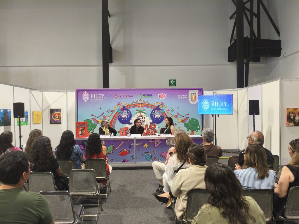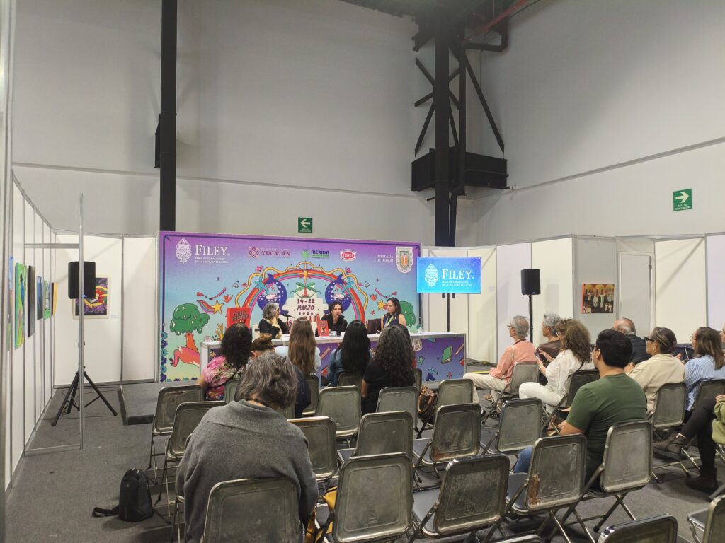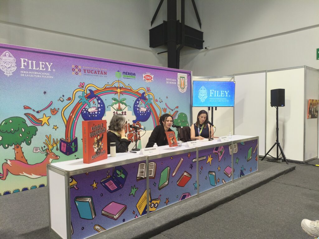Otra actividad del programa de la FILEY, fue la presentación del libro “La visible oscuridad”, de la autora Norma Lazo, publicado por la editorial Lumen-PHR y presentado por Ximena Escalante y Marisol Iturrios.