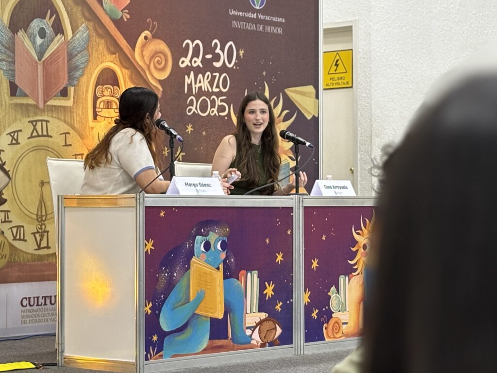 Acompañada por la moderadora Margo Sáenz, la autora relató que le tomó un año completar este libro, en el que aborda el amor y el crecimiento personal, reflejando en sus personajes sus propias vivencias.