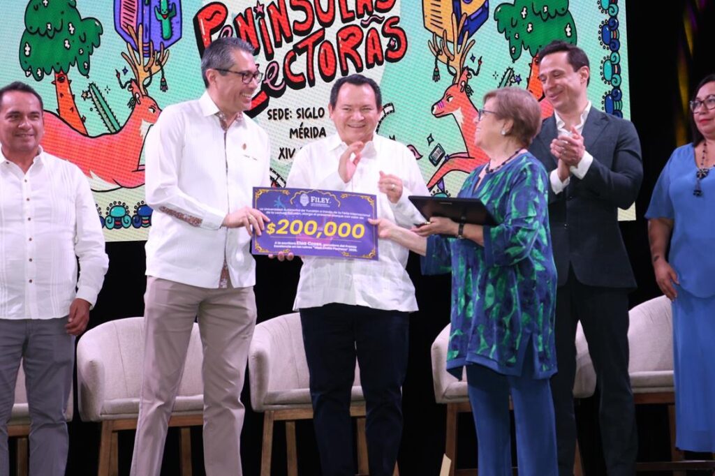 Finalmente, agradeció a las autoridades por la distinción reafirmando el compromiso con la cultural y la promoción de la lectura.Antes de finalizar, el gobernador constitucional del Estado de Yucatán, Joaquín Díaz Mena, destacó que los jóvenes yucatecos encuentran en la FILEY una oportunidad única para acercarse a la literatura, conocer a sus autores favoritos y descubrir nuevos mundos a través de los libros. Indicó que la literatura en la lengua maya, ocupa un lugar especial en esta feria. Reconoció a los escritores que mantienen viva la lengua originaria enriqueciendo el patrimonio cultural de Yucatán y de México.