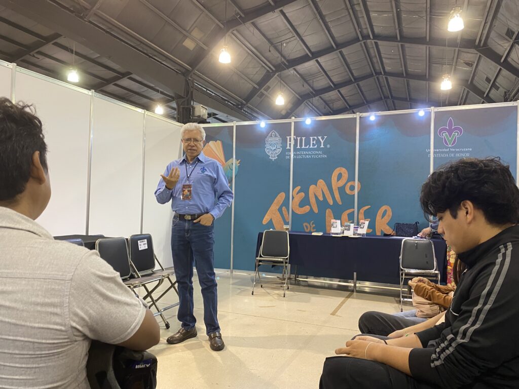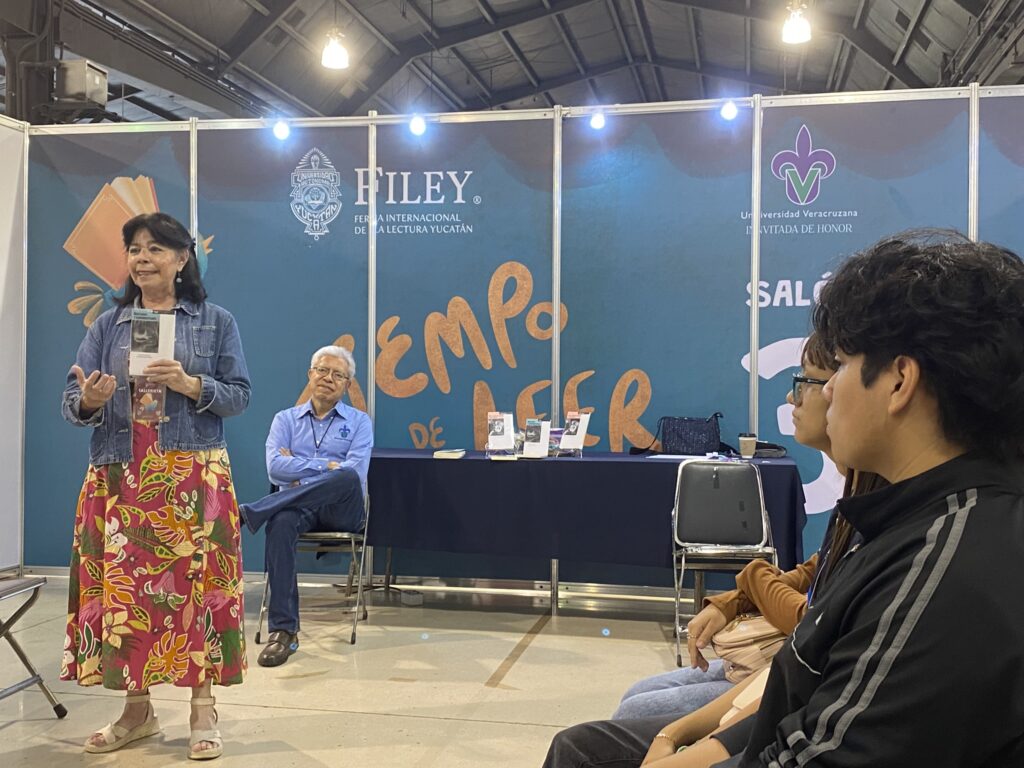 En el último día de la FILEY 2025 se brindó el taller “Animación a la lectura”, a cargo de Guadalupe Flores Grajales y José Luis Martínez Suárez, ambos profesores de la Facultad de Letras Españolas de la Universidad Veracruzana (UV), invitada de honor de la Feria.